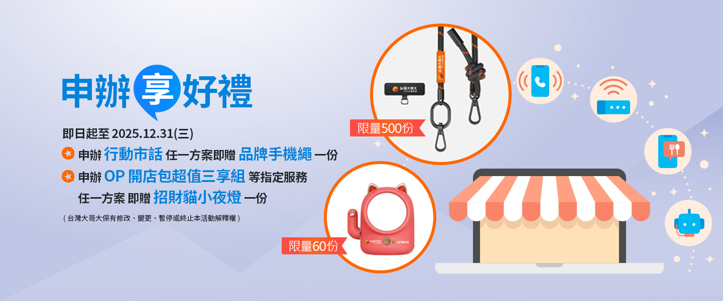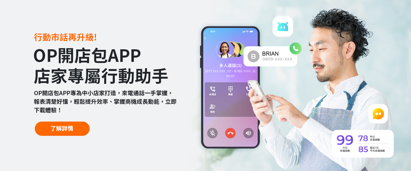 因店家需求不同,我們也提供了方案彈性,讓品牌經營者可以根據需求,挑選 OP 開店包 的服務組合,如:行動市話+店家寬頻,若後續想要升級或是加購其他服務,也能輕鬆輕 鬆調整。若想進一步了解方案內容,歡迎預約我們的 數位轉型顧問 或直接撥打 免費客服 專線: 0809-000-809 轉「3」